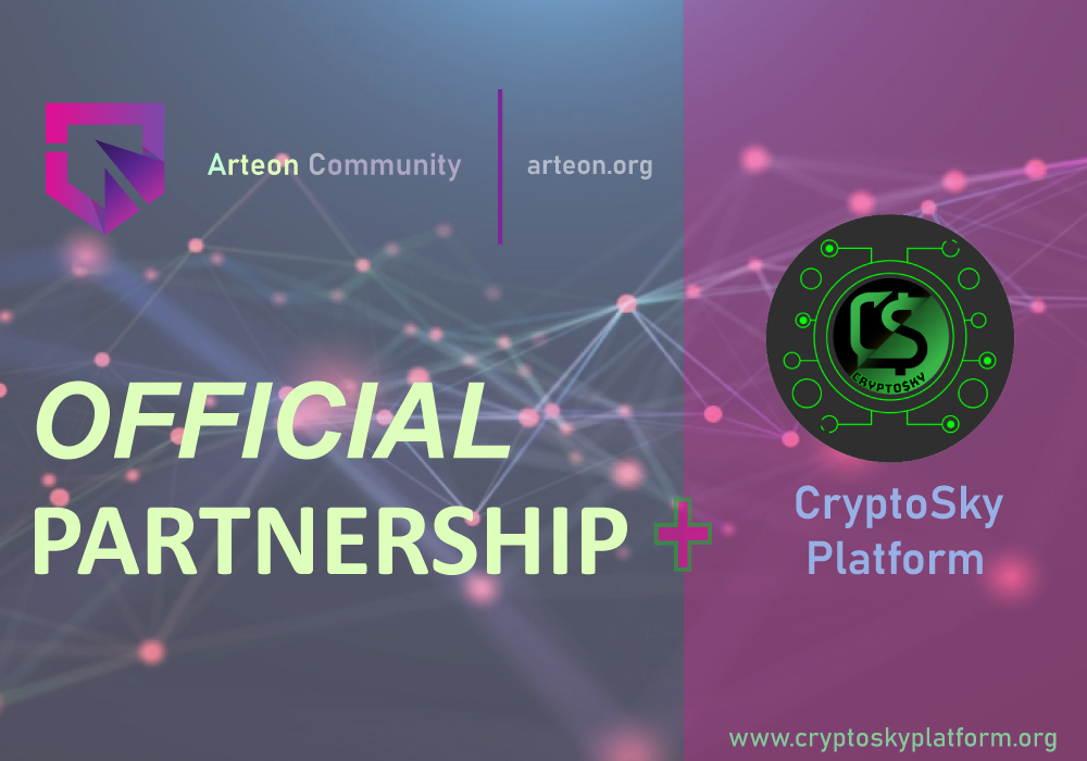 We Are Happy To Say CryptoSky is Now Another Strong Official Partnership With ARTEON Community. We will best try to always Support &Growth our all clients, They are also happy to be A Official partnership of CryptoSky, Hope get both will good feedback in coming days.....